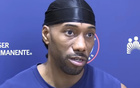 北京时间4月15日,在NBA附加赛快船对阵勇士赛前,伦纳德接受了媒体的采访。
