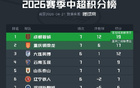 中超积分榜:川渝两队继续强势领跑,国安升至第10,三镇转正