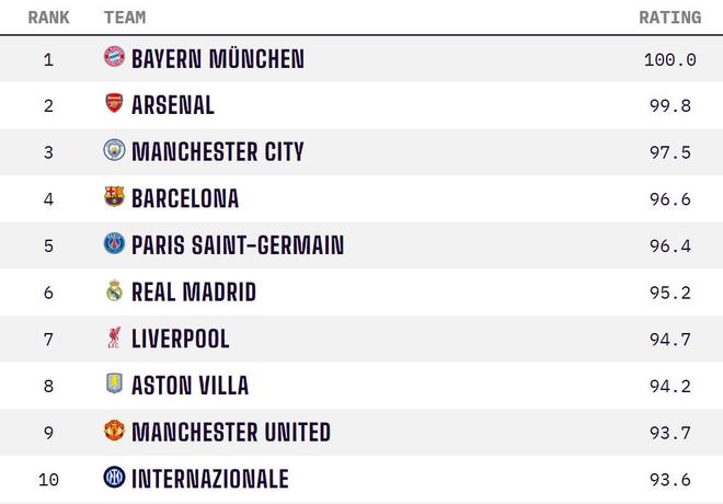 OPTA全球俱乐部实力榜:拜仁居首阿森纳次席,前十英超占5席 发布时间:2026-04-15 16:43:00 | 浏览: 次 直播信号源 一键直击直播 高清直播{看球热门} 热门直播 4k超清推荐 4月13日,数据平台Opta更新了本期全球俱乐部实力榜。德甲豪门拜仁位列榜首,阿森纳下降1位暂列次席,前十中英超球队共占5席,国米成为前十唯一的意甲球队。以下为排名前20的球队拜仁慕尼黑阿森纳曼城巴塞罗那巴黎圣日耳曼皇家马德里利物浦阿斯顿维拉曼联国际米兰马德里竞技布莱顿多特蒙德切尔西纽卡斯尔联葡萄牙体育伯恩茅斯勒沃库森布伦特福德埃弗顿 标签: 英超 拜仁 曼联 德甲 阿森纳 利物浦 埃弗顿